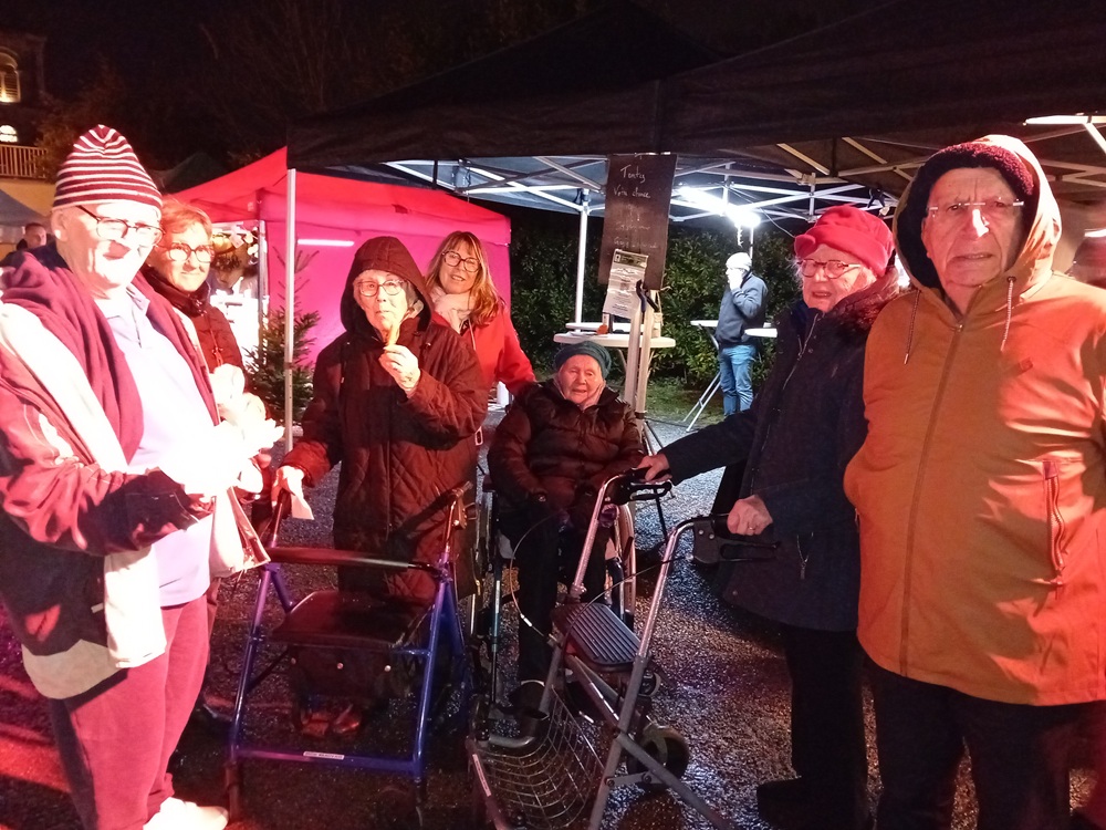 Le même jour, plusieurs résidents ont rejoint le centre‑ville pour assister à l’inauguration du marché de Noël de Martignas‑sur‑Jalle. Cette sortie a permis de maintenir un lien fort avec la vie locale. Les résidents ont découvert des stands artisanaux proposant produits culinaires, décorations et bijoux. Ils ont échangé avec les exposants et dégusté des spécialités locales. La visite de la grande crèche de l’église a prolongé ce moment convivial. Les participants sont revenus ravis de cette sortie nocturne, riche en découvertes et en souvenirs.