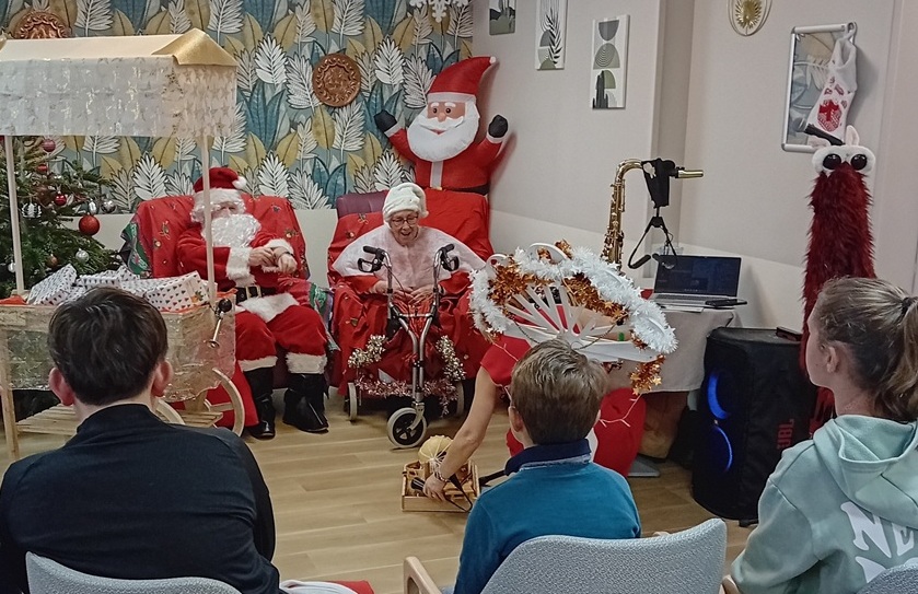 La Résidence du Bourg, EHPAD à Martignas‑sur‑Jalle, a poursuivi les festivités avec l’accueil des enfants des membres du personnel le mercredi 17 décembre. Dix enfants, petits et grands, ont partagé un moment intergénérationnel très apprécié. Ils ont assisté à un spectacle musical animé par Laly, violoniste et saxophoniste. L’arrivée du Père Noël, accompagné de la Mère Noël, a marqué un temps fort de l’après‑midi. La distribution des cadeaux a suscité de nombreux sourires, autant chez les enfants que chez les résidents.